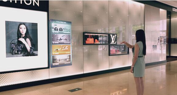 互動櫥窗設備可將圖像投射到商戶臨街玻璃櫥窗的普通玻璃上(所有互動櫥窗設備都放置在店內,畫面尺寸不限),顧客在店外隔著玻璃點擊圖像畫面,在店內的互動櫥窗設備可感應到 ……